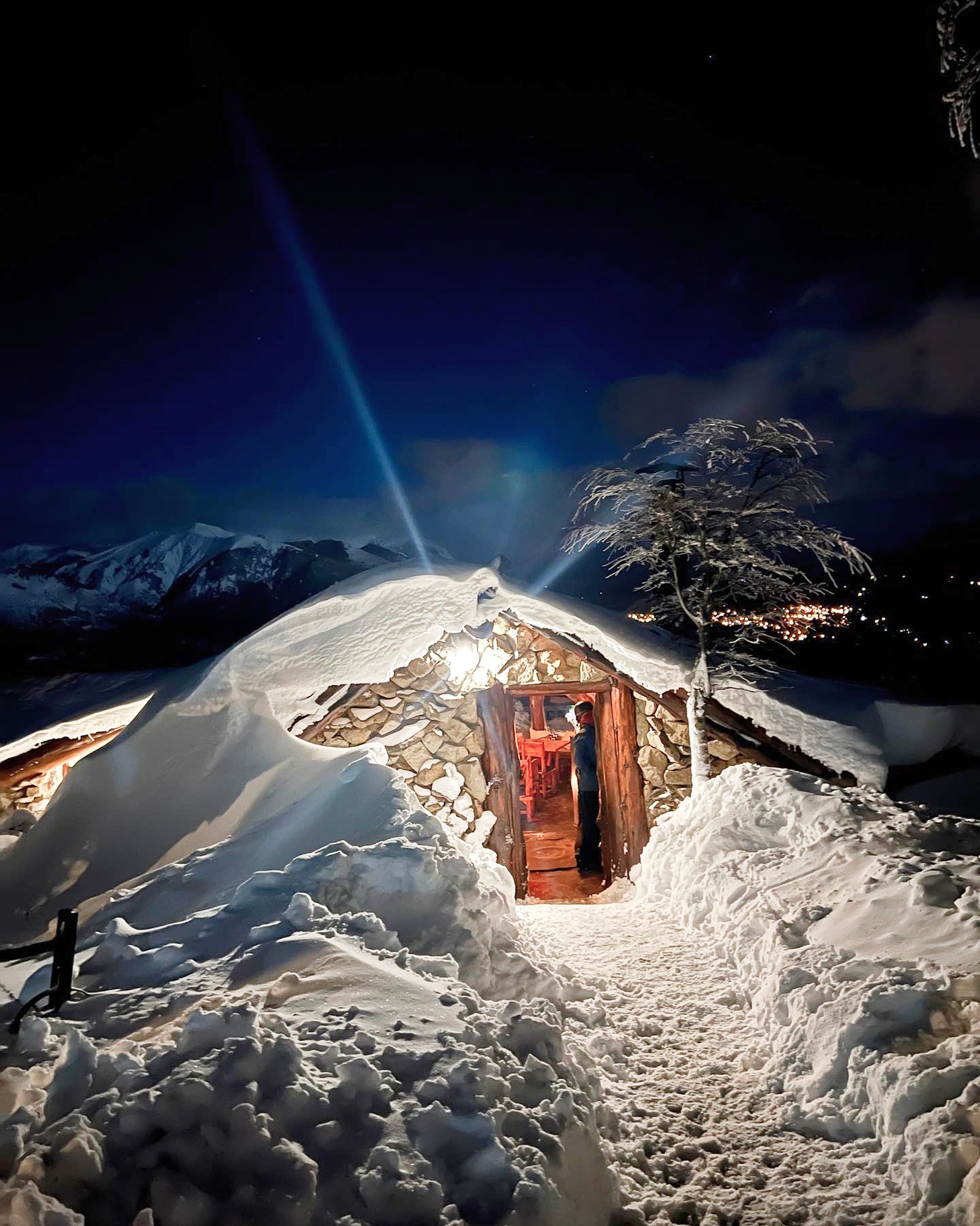 Intimate atmosphere: Looking for an unforgettable moment? Nighttime is a favorite among adventurers who want to unwind after a day of skiing. Ascend the winding snowy road to reach our cozy refuge: an intimate ambiance, candlelight, and the warmth of the hearth create the perfect setting for a magical mountain experience that will awaken all your senses.