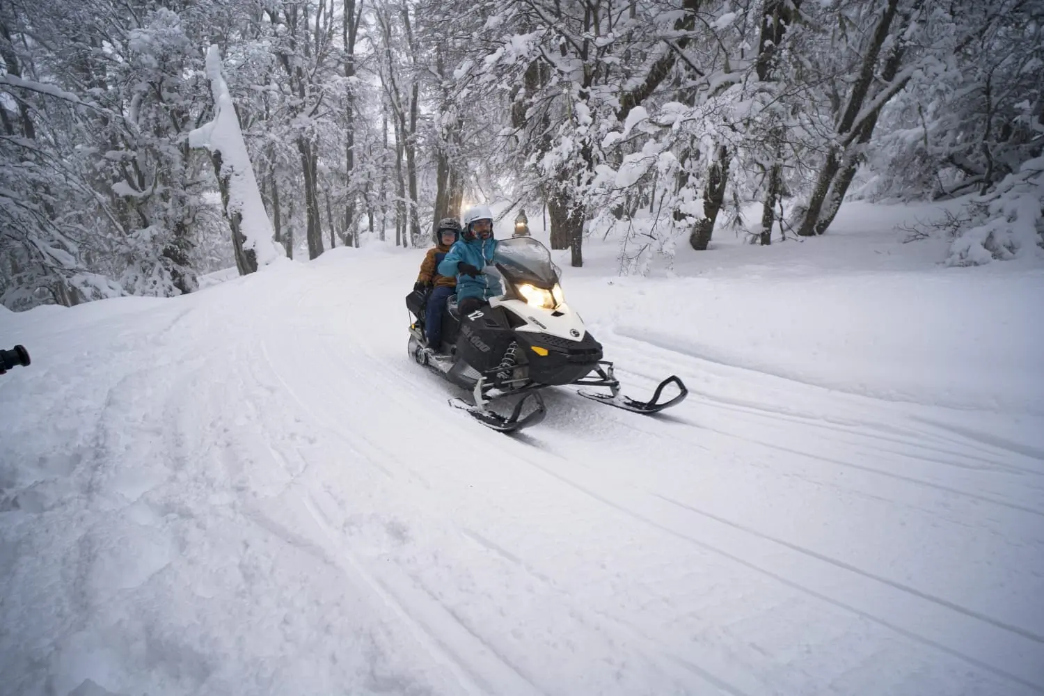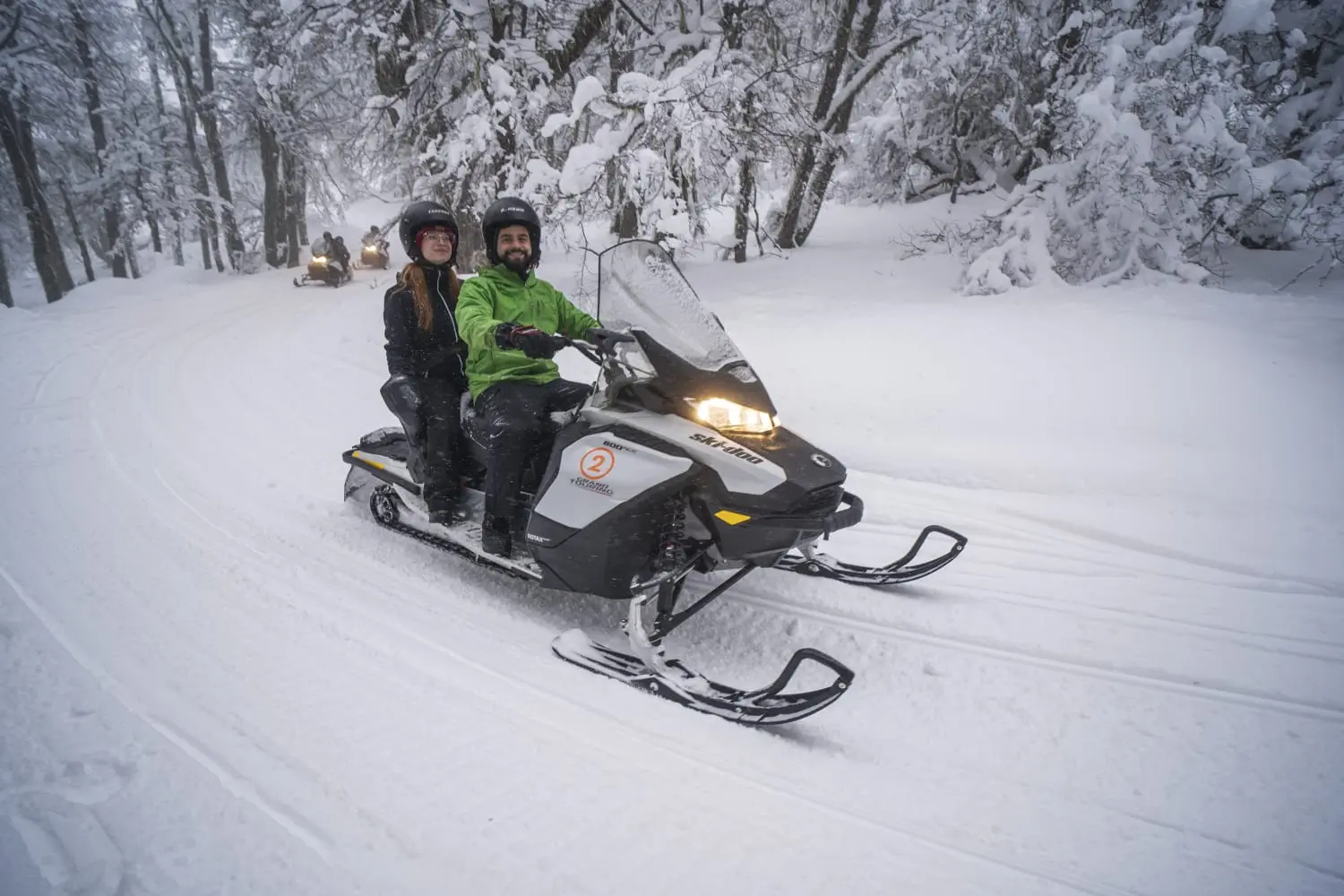 Há sempre duas pessoas por moto de neve. Os participantes podem se revezar na condução; por exemplo, uma pessoa sobe e a outra desce. Em grupos com um número ímpar de membros, a pessoa que ficar sozinha pode compartilhar a moto de neve com outro participante ou andar com um de nossos guias.
